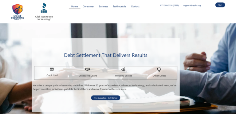 Debt Solutions is a typical small business website. The layout was designed by the website owner to fit his/hers particall needs. I can create any website to your specifications, starting at $349.