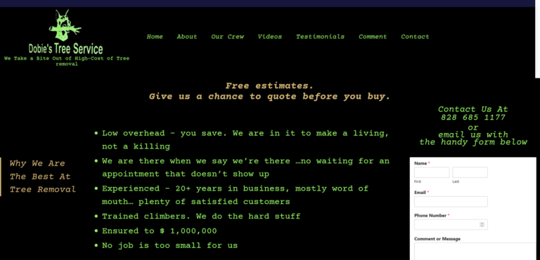 Dobie’s Tree Service was done for a company located in Hendersonville, NC. This site was constructed using WordPress and is typical of the websites that I build.